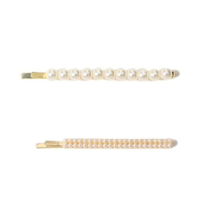 2本セットでアレンジの可能性が広がります。子どもとお揃いにするのも可愛い。B:MING by BEAMS / SET パールピン①¥1,980(ビーミング)