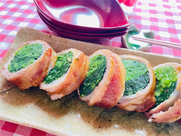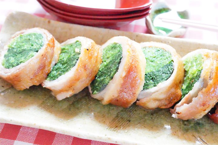 豚肉をサッパリ、栄養豊富なほうれん草をたっぷり食べられる「ほうれん草の豚バラロール」。