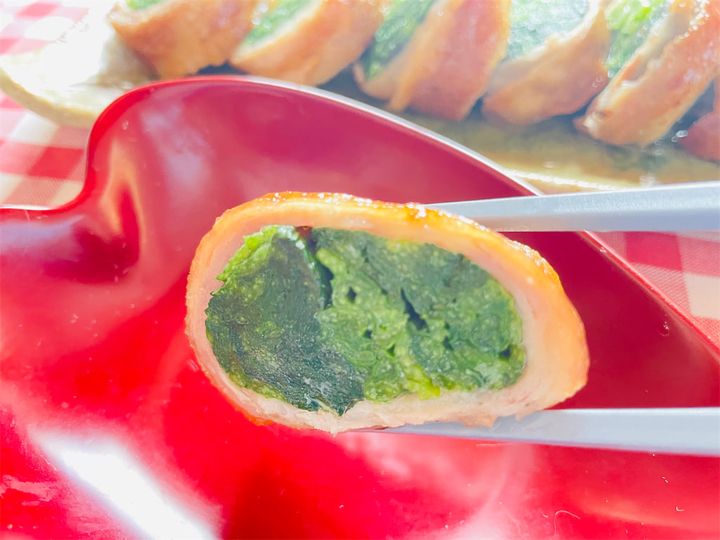 うわ~、断面がきれい!ほうれん草がみっちり詰まってますね。