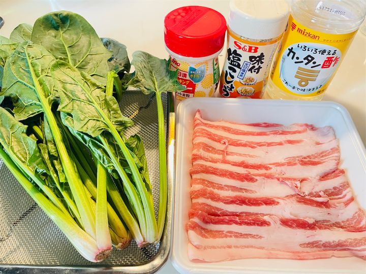 豚バラ肉で野菜を巻いて、甘辛く焼く肉巻き。ガッツリおいしくて、お肉と野菜をバランスよく摂れるのでお弁当などに重宝します。そんな肉巻きの「具」は、アスパラガスやにんじんなどが定番。でも、今回長野県の農家に教わったレシピでは、なんと「ほうれん草」を巻いちゃいますよ!さらに驚きなのが、メインの味付けは「調味酢」のみという点!酸っぱくならないのかしら?いっちょ作ってみます♪