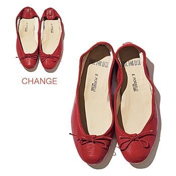 赤バレエシューズ(別注)/ポルセリ(エディット フォー ルル) 「かかとを踏める前提のくたっとしたレザーで、カジュアルに使える1足。古着っぽい赤らしく、レギンスなどとレトロに装いたい」(スタイリスト・樋口かほりさん)
