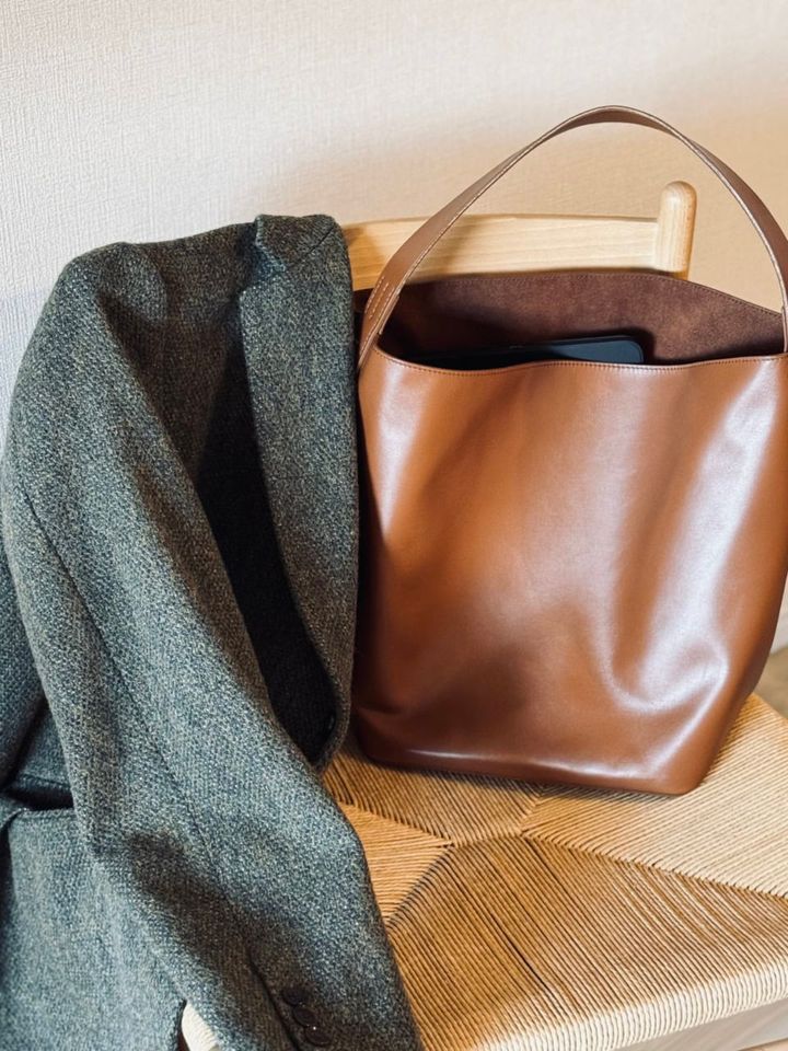 毎シーズン必ずチェックしている、AURALEE(オーラリー)。展示会で即決したのがこちらのバッグでした。リュックをめちゃくちゃ愛用している大・大・大好きなAeta(アエタ)とのコラボで、シンプルなんだけどどこか洒落た佇まいに惚れました。そして、なんといっても使い勝手が抜群! パソコンもiPadも余裕で入るし、バケツ型でマチがしっかりあるのでお弁当箱も傾くことなく持ち運べます(お弁当派には何気に嬉しいポイント!)。レザーだけど柔らかく、重さも感じず、肩掛けしたときのフィット感にも驚き。
