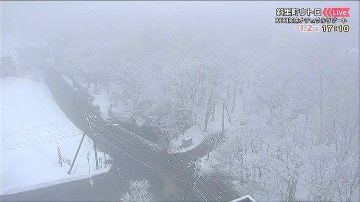 斜里町ウトロでは今の映像?と疑ってしまうような雪景色です。
