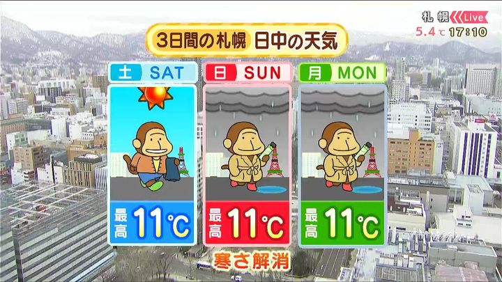 3日間の札幌です! 土日月の天気をもんすけでお伝えします!