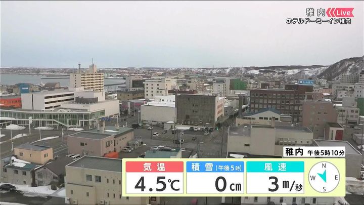 稚内ではほとんど雪は見当たりません。気象台の観測ではきょう4日(金)午前11時に積雪がゼロになりました。今後は春らしい気温も続きます。