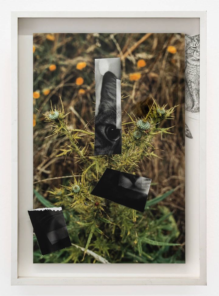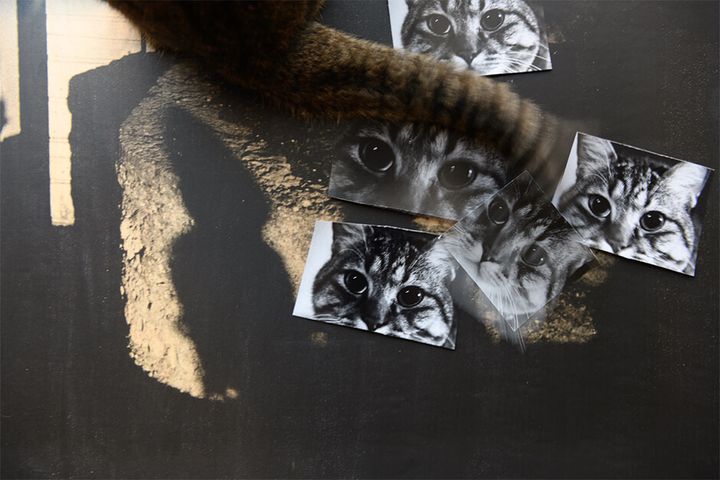 同ギャラリーにおいて2020年以来3回目の個展となる今展では、愛猫・愛犬を捉えた新作のモノクロームプリントや彫刻をはじめ、これまでに発表してきた作品に手焼きプリントのコラージュや鉛筆のドローイングを加えて再構成して新たな作品として展示。