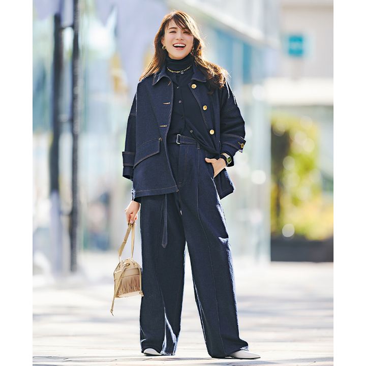 キレイめデニムの「セットアップコーデ」小物使いにも注目!