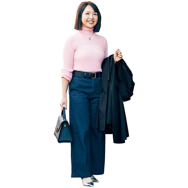 デニムパンツ¥39,600デニムジャケット¥82,500(ともにマッキントッシュ/マッキントッシュ ギンザシックス店)カーディガン¥29,700中に着たタートルニット¥27,500(ともにスローン/ザ ショップ スローン 新静岡セノバ店)ピアス¥20,900ネックレス¥39,600(ともにローラ ロンバルディ/八木通商)時計¥7,150(カシオ クラシック/カシオ計算機 お客様相談室)バッグ¥126,500(J&M デヴィッドソン/J&M デヴィッドソン カスタマーセンター)パンプス¥36,300(シーセイ/アイネックス)