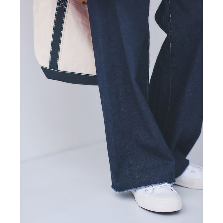 股上深めでほぼ脚!状態になれる一本。腰回りゆったのフレアシルエットで、気になる下半身を拾わず。切りっぱなしのフリンジと靴との合わせを楽しみたい。