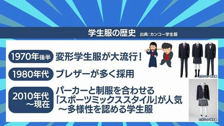 学生服の思い出は?「男女でセーター交換」今はパーカーMIXが制服採用の学校も