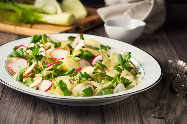 おすすめは、クレソン、ホウレン草、リンゴ、クルミのサラダ。「クレソンのピリッとした辛みでリンゴの甘さとナッツの歯ごたえが引き立ちますし、栄養たっぷりでバランスの良いサラダになります」とキートリー氏。「バルサミコ酢やレモン果汁をひとふりすると、風味のバランスが取れるだけでなく、鮮やかさも増しますよ」