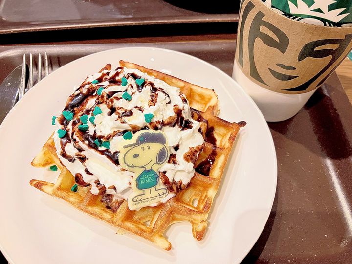 3. 【スタバ新作】スヌーピーがちょこんと乗った春限定アメリカンワッフルが可愛すぎる!