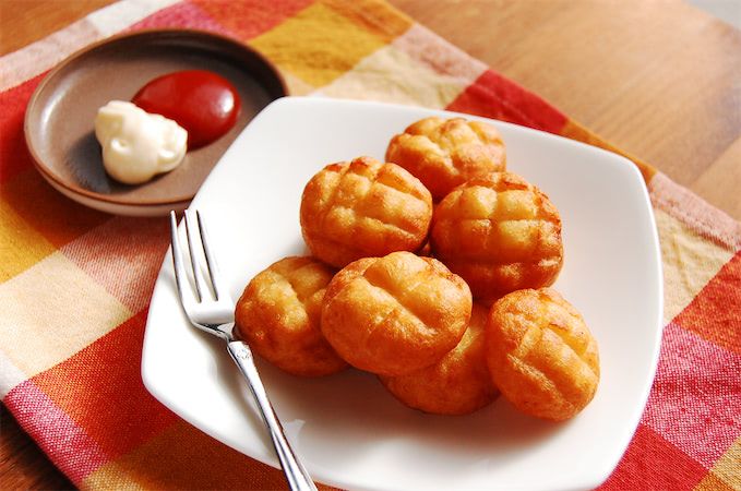 3. ひと口サイズでポイポイ手が止まらん!「メロンパンみたいなポテト」作ろう!味はアメリカンドッグの皮風!?