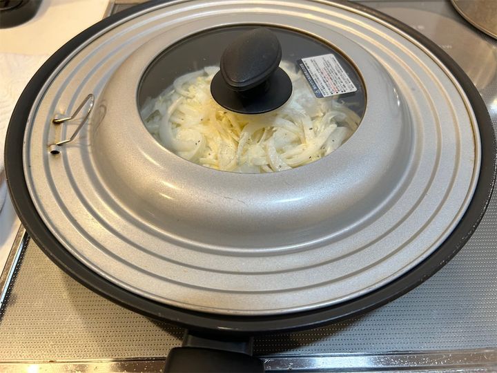 『ちゃらりんこクック』では、このように周りに染み出してくるものを「うま汁」と呼んでいました。新玉ねぎの旨味がたっぷり含まれているみたいです。