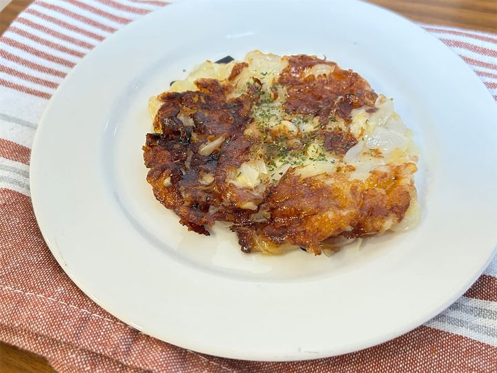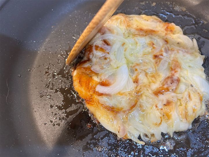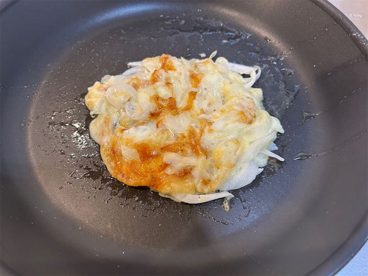 1点補足すると、全体的にやわらかいので、フライパンで引っくり返すのがちょっと難しいかもしれません。筆者は動画のようにきれいに焼けませんでしたが、少々失敗してもおいしそうに見えるところがまた不思議です。