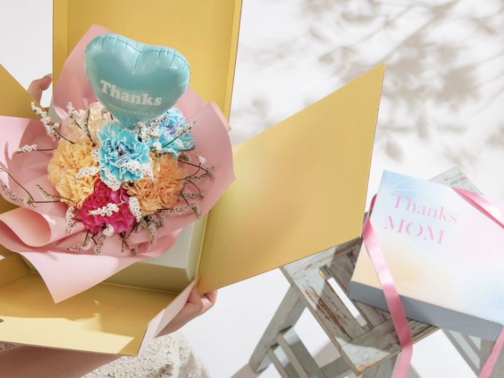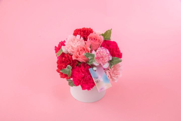 色鮮やかなバラや大輪のカーネーションをたっぷりとあしらったメインアレンジメントのほか、箱を開けるとカラフルな花束が目に飛び込んでくるサプライズBOX入りブーケ、おしゃれな雑貨やおいしいスイーツとのギフトセットなど、豊富なラインアップを取り揃えています。