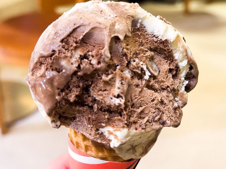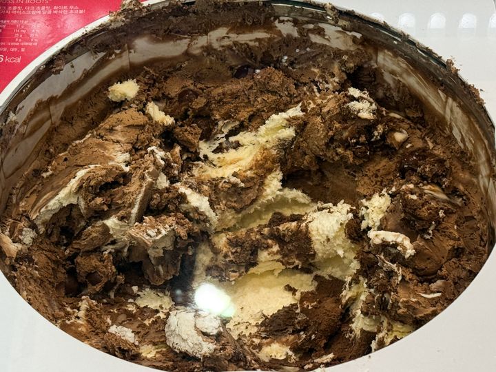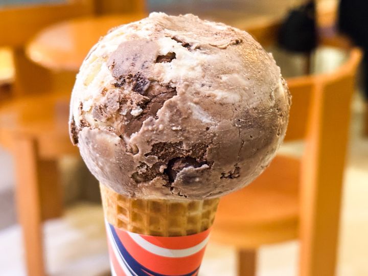 実際に食べてみると、ミルクチョコ、ダークチョコ、ホワイトムースの3種類アイスクリームが合わさりかなり濃厚な味わいです。そして時折現れるチョコレートボールの食感がアクセントになっていて、これが最高においしい!あっという間に完食してしまいました。