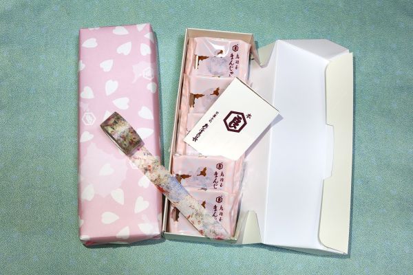 ミュージアムグッズは、鳥羽玉まんじゅう(1‚296円)、田能村直入のマスキングテープ《百花》(部分)(550円)を購入。 鳥羽玉まんじゅうは春らしいほんのりとした甘さです。