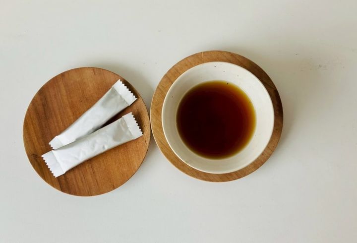 溶けやすい顆粒状。春タイプは、少し酸味を感じるさっぱりとした口当たり。出先で飲みたいときは、あったかいお茶のペットボトルに混ぜてもいいのだとか。