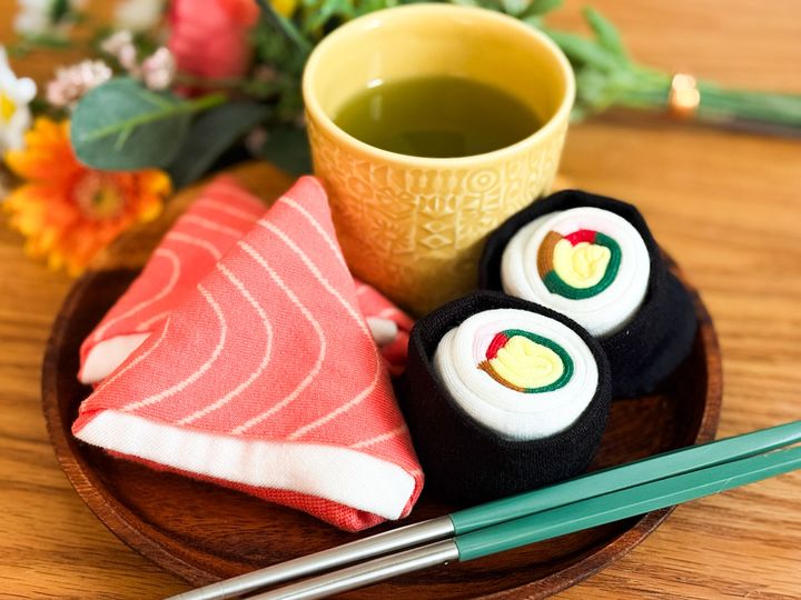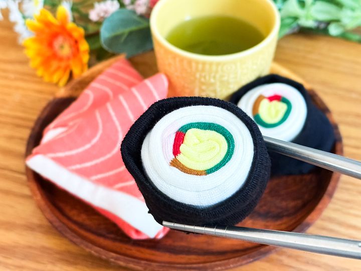 「寿司そっくす」は、富山県にある靴下メーカー「SUKENO」が製造・販売する靴下。名前のとおり、寿司の見た目が特徴的です。