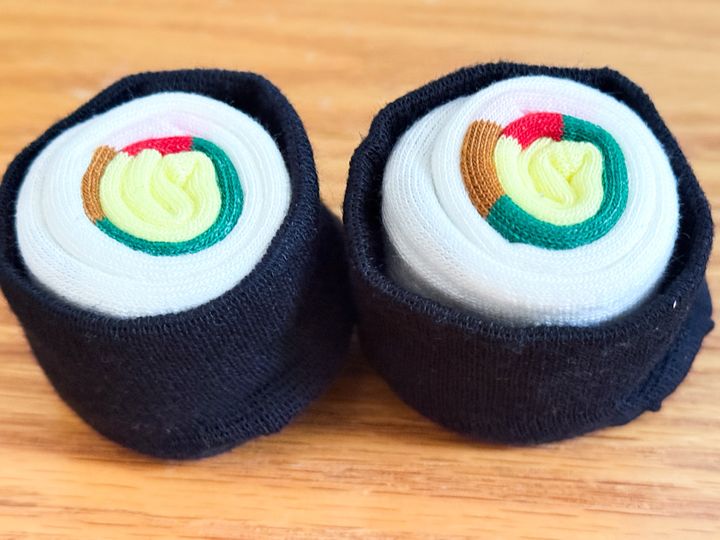 パッケージを開けてみると、きれいに折り畳まれた靴下が登場。どちらもぱっと見は寿司で、本当によくできています!