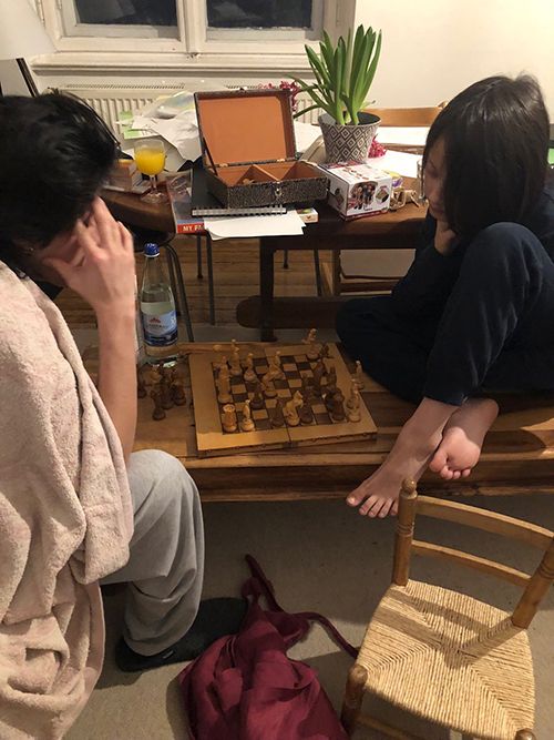 部屋散らかってる、が基本でもいいじゃない。それだけ子どもが遊んだ証拠(笑)。そんなわけで今日も元気に遊んでます! お兄ちゃんとチェス!