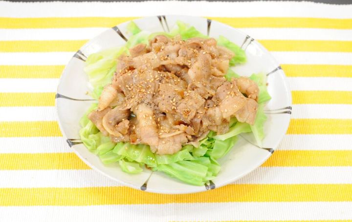 この後、調理はおおむね順調に進み、後は盛り付けを残すだけ。ゆでたキャベツの上に、たれに絡めて焼いた豚肉をのせ、仕上げにいりごま、黒こしょうを振れば完成なのだが、ここでゆりさんから「忘れ物が!」と指摘が。なんとDAIGO、最後の最後まできて、黒こしょうを振るのをうっかり忘れていたのだ。