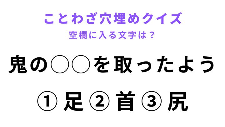 3. 【鬼の◯◯を取ったよう】空欄に文字を入れてことわざを完成させて!
