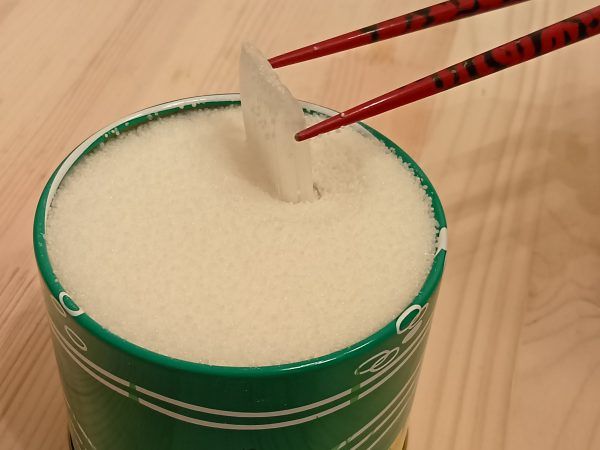 最初の一本は取り出しにくいので、箸で取り出すのがおすすめとのこと。箸先で飴を探すも、見えなくて悪戦苦闘(笑)
