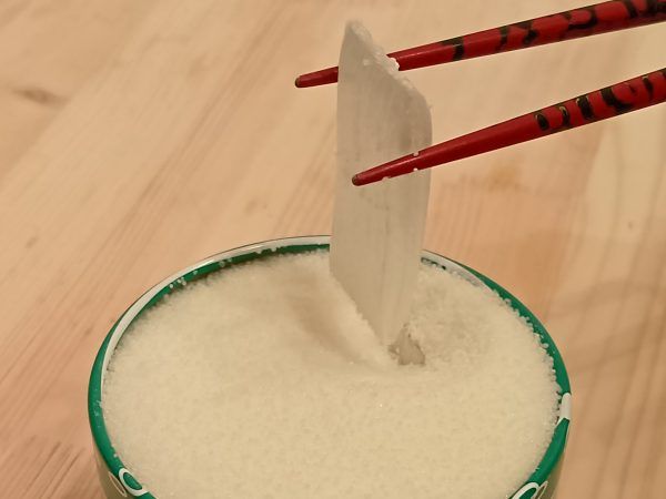 ジャーン! こちらがその晒よし飴でございます♪ 長さは5cmほど、厚みは5mmほどかな。一枚が結構大きいわ。そしてとっても軽い。冬の風物詩、霜柱にも見えますね。