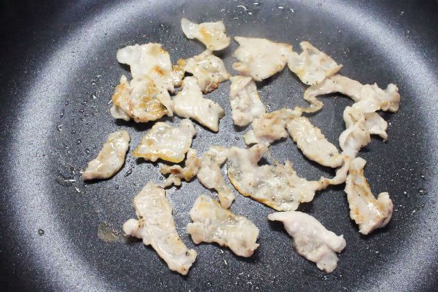 今回はしゃぶしゃぶ用の薄い豚バラ肉を使ったので、片面を約1分ずつ焼くと、両面に焼き色が付きました。