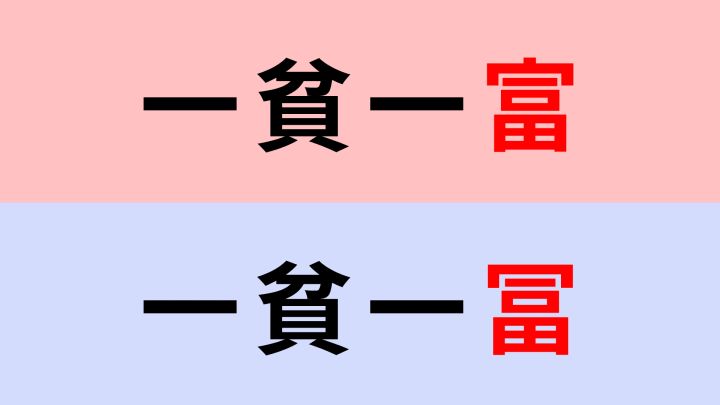【漢字クイズ】「一貧一富」or「一貧一冨」正解はどっち?間違える人続出の問題