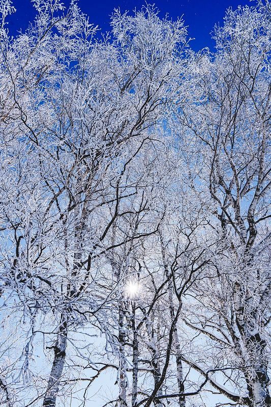 青空の下で、濃い真っ白な霧氷の景色を見られる日。
