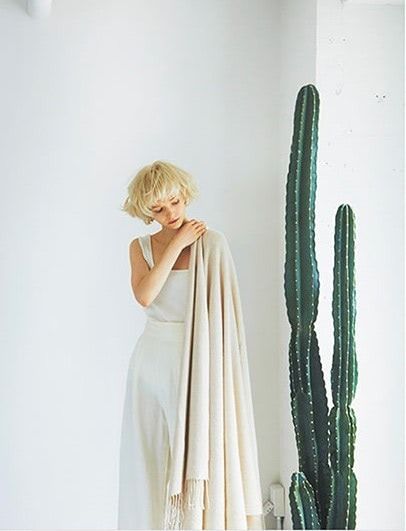 素肌の見える面積が増える夏に必要な、カーディガンやシャツなどの薄軽羽織り。さらにもう1つの選択肢としてストールに注目。服と同系色のストールをプラスすれば色っぽさが和らぐだけでなく、デザイントップスのようにも見えて感度も上がります。(樋口さん)