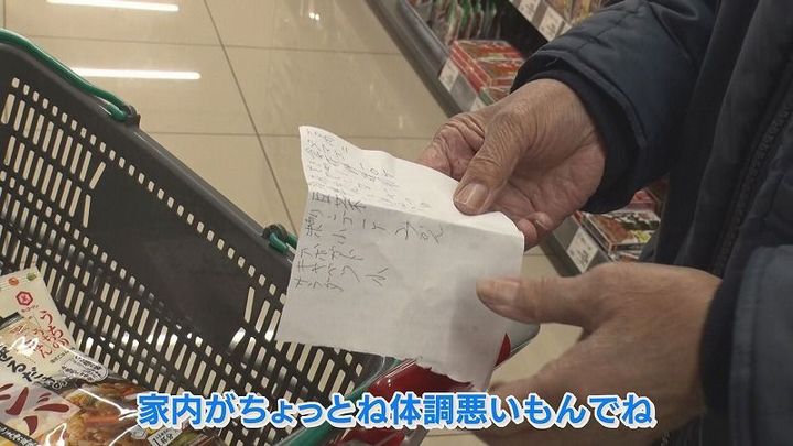 番組スタッフ:「メモみながらお買い物されてましたけど、ご自分でお書きになられたんですか?」男性:「家内がちょっとね、体調悪いもんでね」