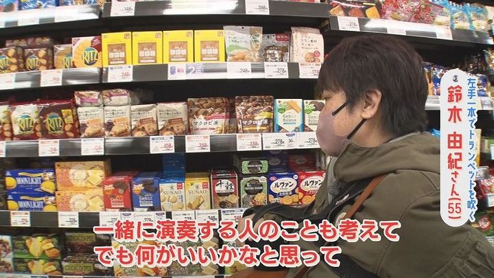 由紀さん:「演奏会が日曜日にあるので、何かおやつ買おうかなと思って。私トランペットやっているんですけど、左手だけで演奏しているんです」
