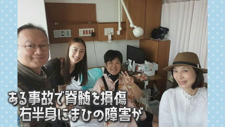 番組スタッフ:「最初っから左で?」由紀さん:「いえ、事故でこうなったんで。装具を作ってくださってそれで支えています」