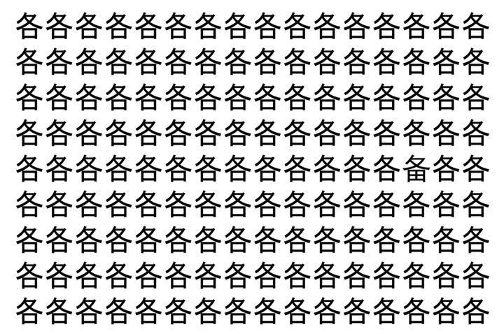 【脳トレ】「各」の中に紛れて1つ違う文字がある!?あなたは何秒で探し出せるかな??【違う文字を探せ!】