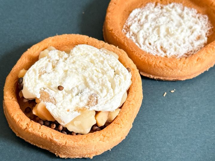 中にはキャラメルソース、マカダミアンナッツ、バタークリーム、エゴマの実がたっぷり詰まっています。おいしそう!