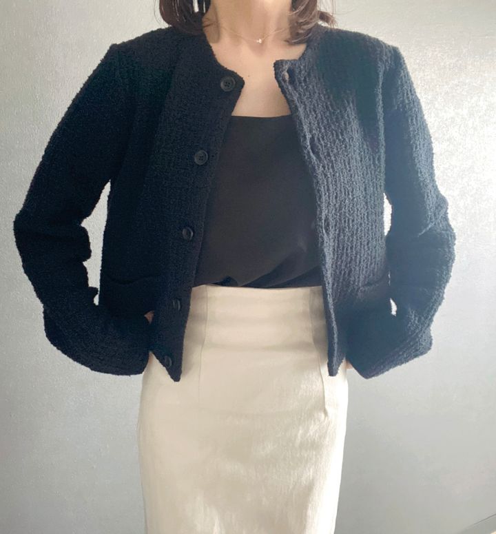 ノーカラーで丈は短め。