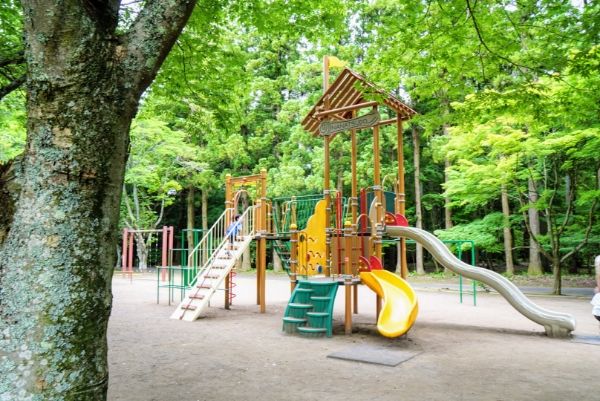 子供達も楽しめる遊具もありますよ。遊具の周りは綺麗な緑に囲まれていて、とても気持ちがいい~!