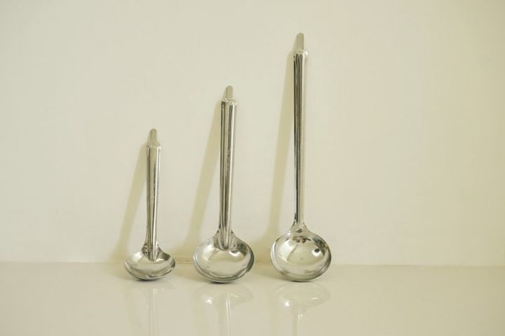 調理器具から文房具まで、ありとあらゆる生活用品を扱う暮らしのデパート『大峰利五金百貨』のおたま(左から25元、30元、45元)。