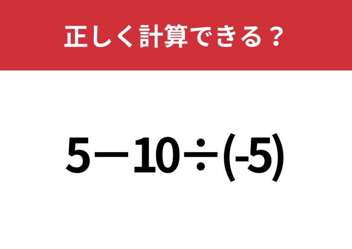 3. マイナスの計算には注意して!「5−10÷(-5)」5秒で解ける?