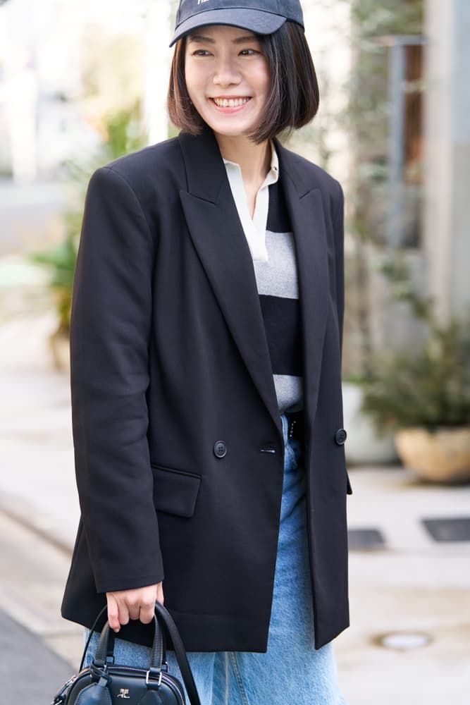 普段からジャケットが大好きで、10万円以上のものからプチプラまで幅広く愛用しています。中でもZARAのジャケットは手頃な価格でトレンドの型を気軽に楽しめるのが魅力。特にこちらのジャケットはやり過ぎないオーバーシルエットが使いやすく、カーディガン感覚でラフに羽織れるので日々大活躍しています。今回はユニクロで人気のラガーシャツニットとクセが強めアイテム同士を組み合わせて、トレンド感と自分らしさ、どちらも楽しめるスタイリングにしました。