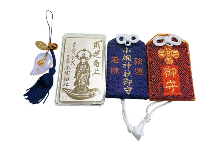 メインで持ち歩いているお守りは4つで右は神奈川の川崎大師、中央2つは東京の小網神社、左は北海道の湯倉神社。