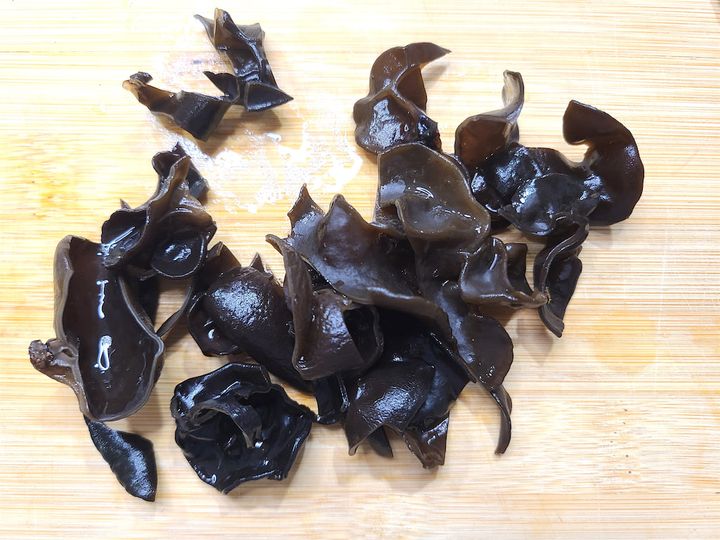 2. キクラゲは湯で戻したあと、食べやすい大きさに切ります。