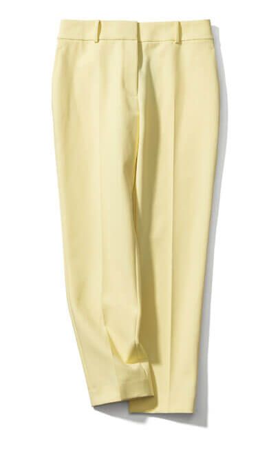 今季トレンドのパステルタッチな淡いイエロー。細めでセンタープレス入りのきれいめルックスです。
