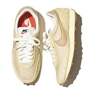 動きまわれるスニーカーで、さらにスタイルアップがかなえられるならもっといい。スニーカーの色や柄、ソールのボリュームを生かせば、ヒールをはかずとも美しいバランスを実現。