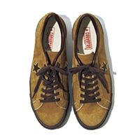 国産スエードを使用した日本製モデル。インソールに刻まれた赤字のロゴやブラウン配色がヴィンテージムードを漂わせる。無骨なメンズっぽいスタイリングを、スエードの起毛感が柔和に。ダークトーンを貫きつつもコクのあるキャメルが奥行きを強化。