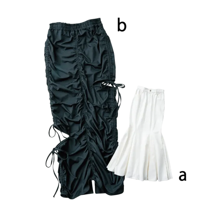 【b】黒ギャザーストリングスカート 8,690円/EMODA ルミネエスト新宿店